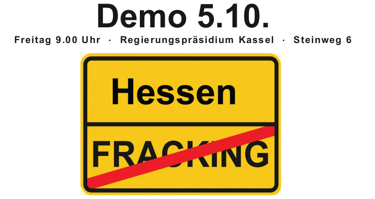 Der Umweltausschuss des hessischen Landtages hat eine Expertenanhörung zum Thema ‚Fracking‘ angesetzt, am 5.10.2012 in Kassel. Demo 5.10. Freitag 9.00 Uhr . Regierungspräsidium Kassel . Steinweg 6