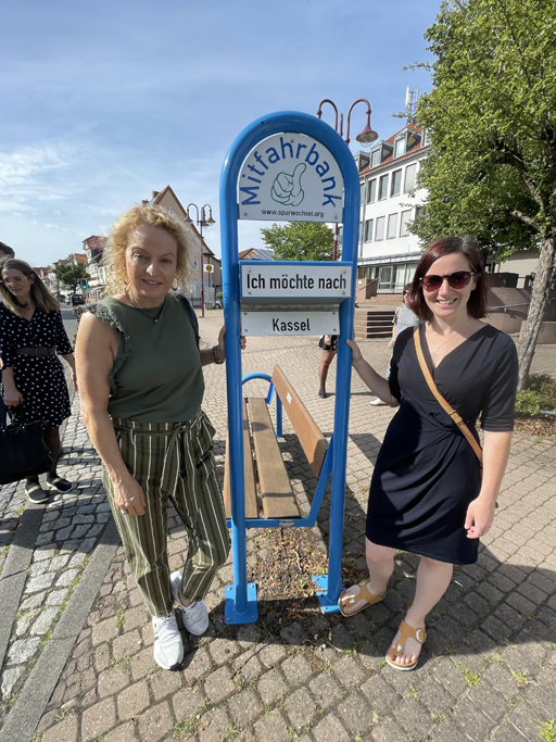 Auf dem anschließenden Klimaschutzspaziergang standen neben dem Besuch des Ladenlokals vom Klimaschutzmanagement das Car-Sharing - System, Mitfahrbänke und das neue Lastenradverleihsystem in Kaufungen auf dem Programm. Siebzehn Lastenräder für unterschiedliche Einsatzbereiche konnten über eine Landesförderung durch die Gemeinde, unterstützt vom Verein Spurwechsel e.V., angeschafft werden. Sie sollen in Zukunft einen wichtigen Beitrag zu einer klimafreundlichen innerörtlichen Mobilität leisten.