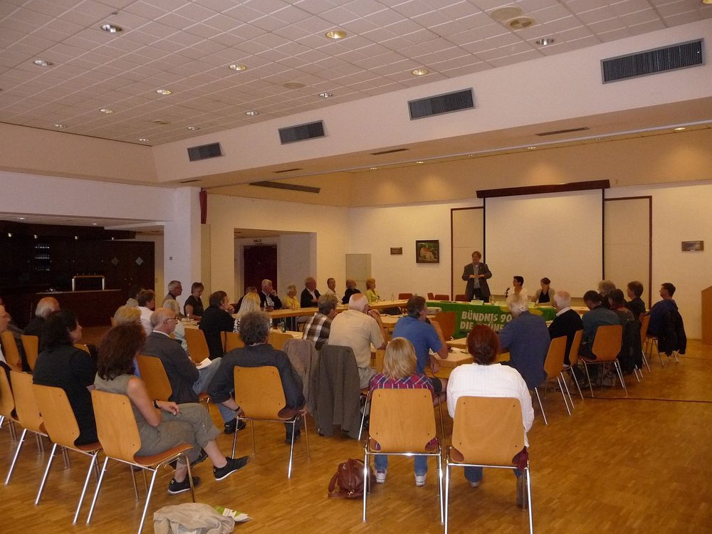 In der Schauenburg-Halle informierten die Grünen am Donnerstag, 9. August 2012 über das Vorhaben eines kanadischen Bergbau-Unternehmens, in Nordhessen Erdgas zu fördern. Jochen Lody und Jürgen Leister aus Kaufungen informierten sich auf der Veranstaltung.